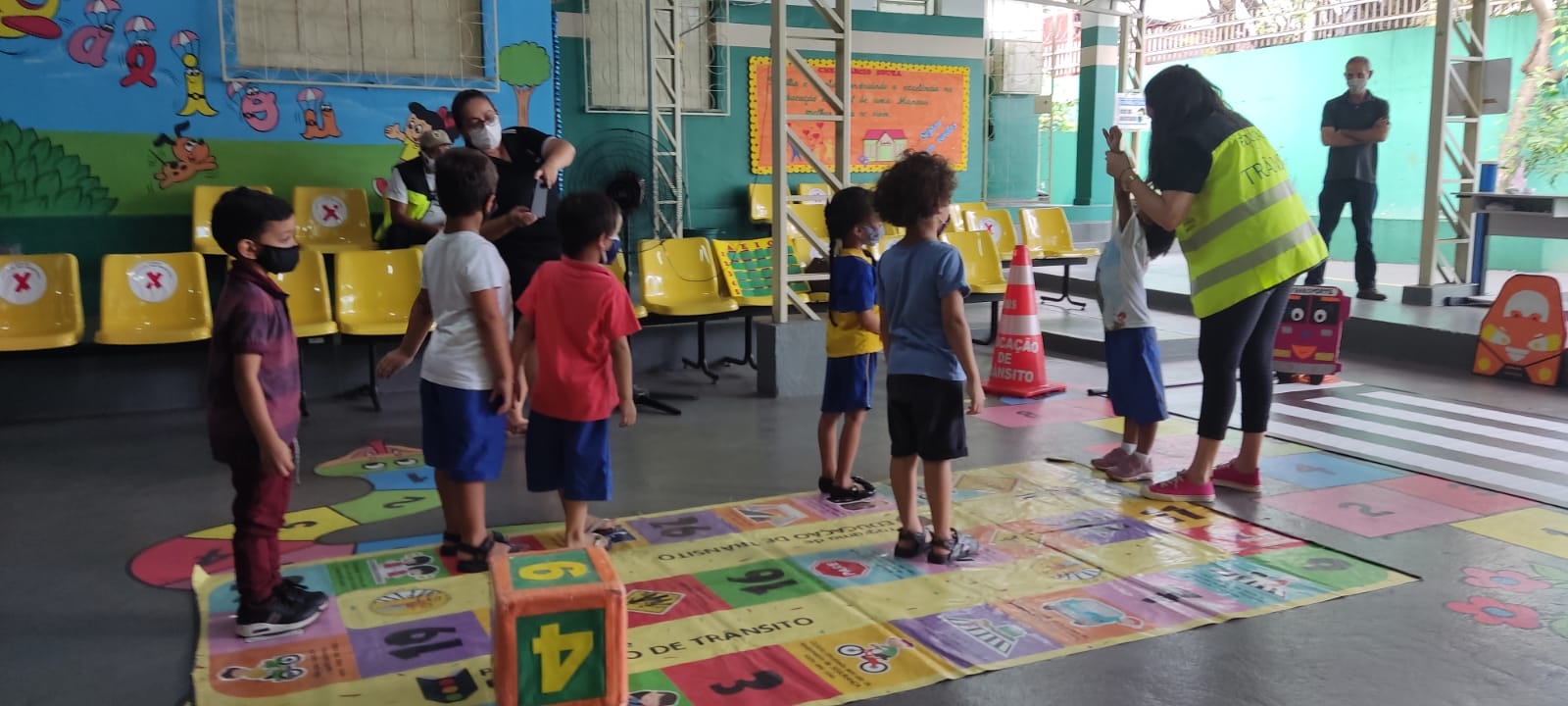 A atividade foi apresentada por educadores do IMMU, que mostraram a temática trânsito por meio de jogos pedagógicos elaborados a partir de produtos reciclados como maquetes interativas, construídas com material reaproveitados, além de vivência real na faixa de pedestres para conscientizar os alunos sobre travessia segura.
