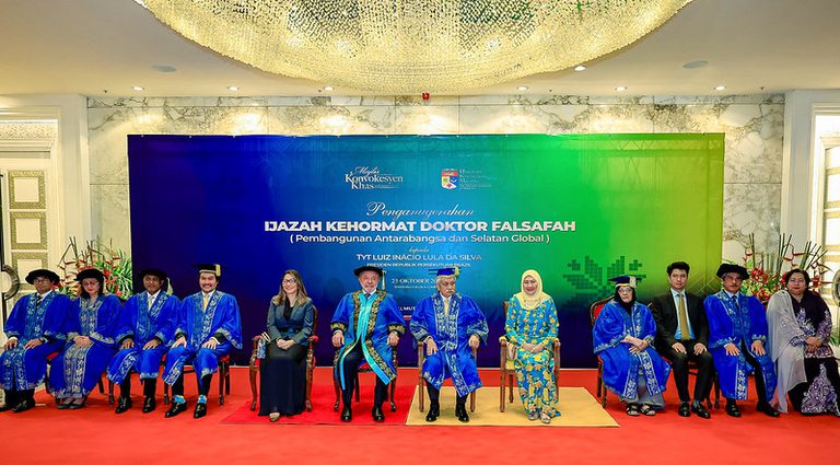 O vice-reitor da Universidade Nacional da Malásia, Prof. Dr. Sufian Jusoh, reiterou que a homenagem simboliza o reconhecimento internacional ao legado de Lula, e destacou a contribuição do líder brasileiro para ampliar o acesso à educação a milhares de pessoas. “Ele se tornou o primeiro presidente do Brasil sem diploma universitário, mas foi, ao mesmo tempo, o presidente que criou o maior número de universidades públicas em toda a sua história. A Universidade da Malásia está realmente honrada de outorgar o título ao presidente do Brasil”, disse.