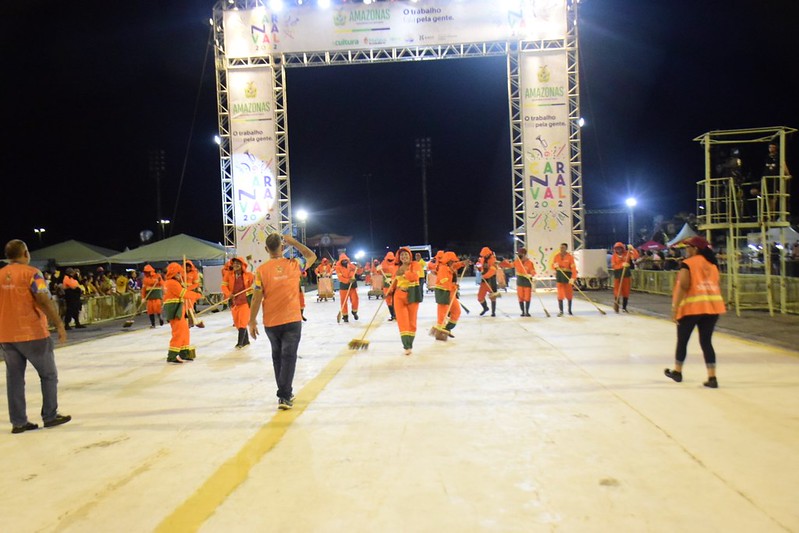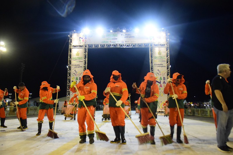 “A Prefeitura de Manaus não poderia deixar de estar presente fazendo a limpeza geral da passagem de cada escola, porque as pessoas que desfilam aqui merecem um local bem limpo. Essa é a orientação do prefeito David Almeida e do secretário Sabá Reis, deixando o local um ‘brinco’. A nossa tropa também passa desfilando, pois ela merece”, destaca o secretário de Operações da Semulsp, José Rebouças.