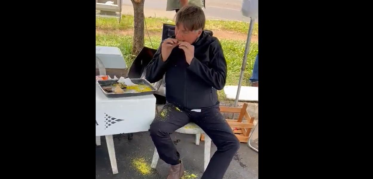 Bolsonaro posa comendo frango em uma tenda em Brasília, no último dia 30