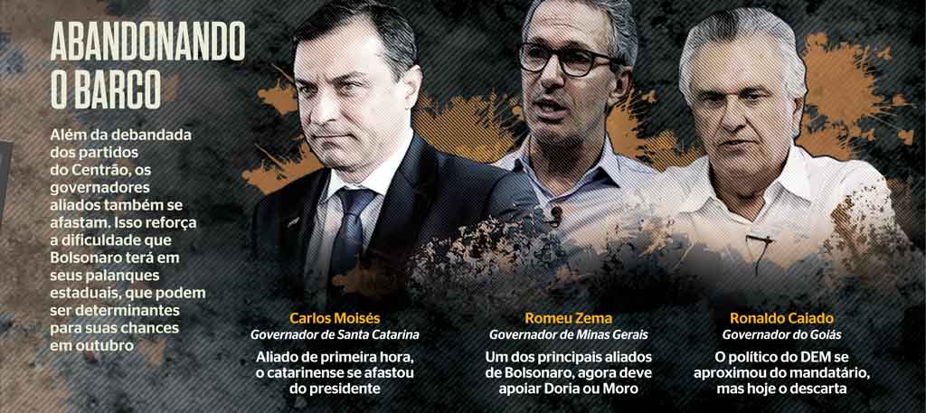 A debandada se multiplica pelo País. Isso fica escancarado especialmente no Nordeste, onde Lula se beneficia com a rejeição do presidente. O esvaziamento da reeleição tem inclusive criado constrangimentos. O titular da pasta da Cidadania, João Roma, do Republicanos contava com o apoio do presidente para uma candidatura na Bahia contra seu ex-padrinho, ACM Neto (DEM, atual União Brasil). Corre o risco de naufragar junto com Bolsonaro. Na Paraíba, um aliado de primeira hora, o ex-prefeito de Campina Grande, Romero Rodrigues (PSD), desistiu de concorrer ao governo estadual por causa da alta rejeição do presidente. Pela mesma razão, governadores que eram aliados também sinalizam que não estarão no mesmo palanque do presidente: Romeu Zema (MG), Carlos Moisés (SC) e Ronaldo Caiado (GO).