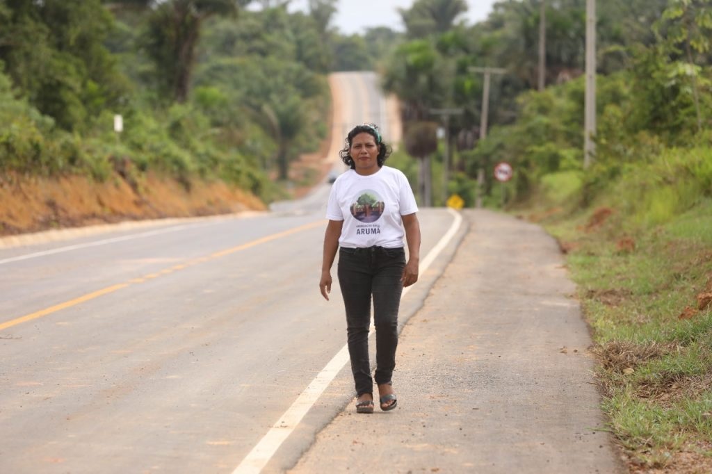 “Tínhamos muitas dificuldades em tirar os nossos produtos, atoleiro, e no final o nosso lucro era quase zero. Esse ramal para a gente é o sonho de todo agricultor. Hoje vocês estão vendo essa maravilha que é o Ramal do 11. Gratidão ao governador”, afirmou Ana Peixoto, 48, presidente da Associação Arumã, que conta com 65 associados, produzindo ovos e hortaliças escoados para a sede do município de Autazes e para a comunidade Novo Céu.