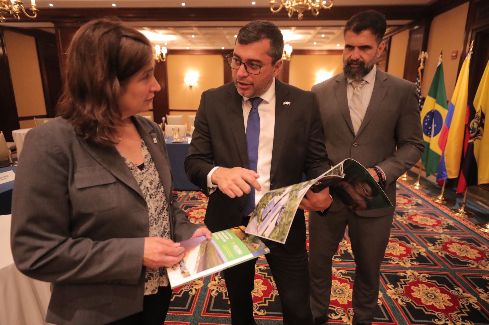 “Essa agenda aqui é muito importante porque a gente começa a definir algumas estratégias, estabelecer relação com instituições que possam trocar experiências, tecnologias, que possam também ser parceiros em investimentos, e fortalecer relações, como a parceria com a USAID (Agência dos Estados Unidos para o Desenvolvimento Internacional). É o momento, também, de prestar contas daquilo que a gente tem feito a partir do Manaus Action Plan, que foi um plano criado no ano passado quando o GCF foi realizado no estado do Amazonas”, disse Wilson Lima durante o encontro em Washington.