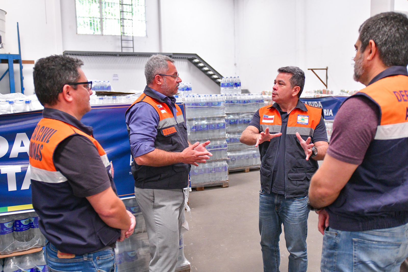 Além de acompanhar os trabalhos logísticos de transporte de ajuda humanitária, o vice-governador Tadeu de Souza se reuniu com membros da equipe técnica da Defesa Civil do Amazonas. Durante a reunião, foram discutidas as ações de resposta do Governo do Estado para conter os efeitos das mudanças climáticas, que agravam os períodos de cheia e vazante dos rios.