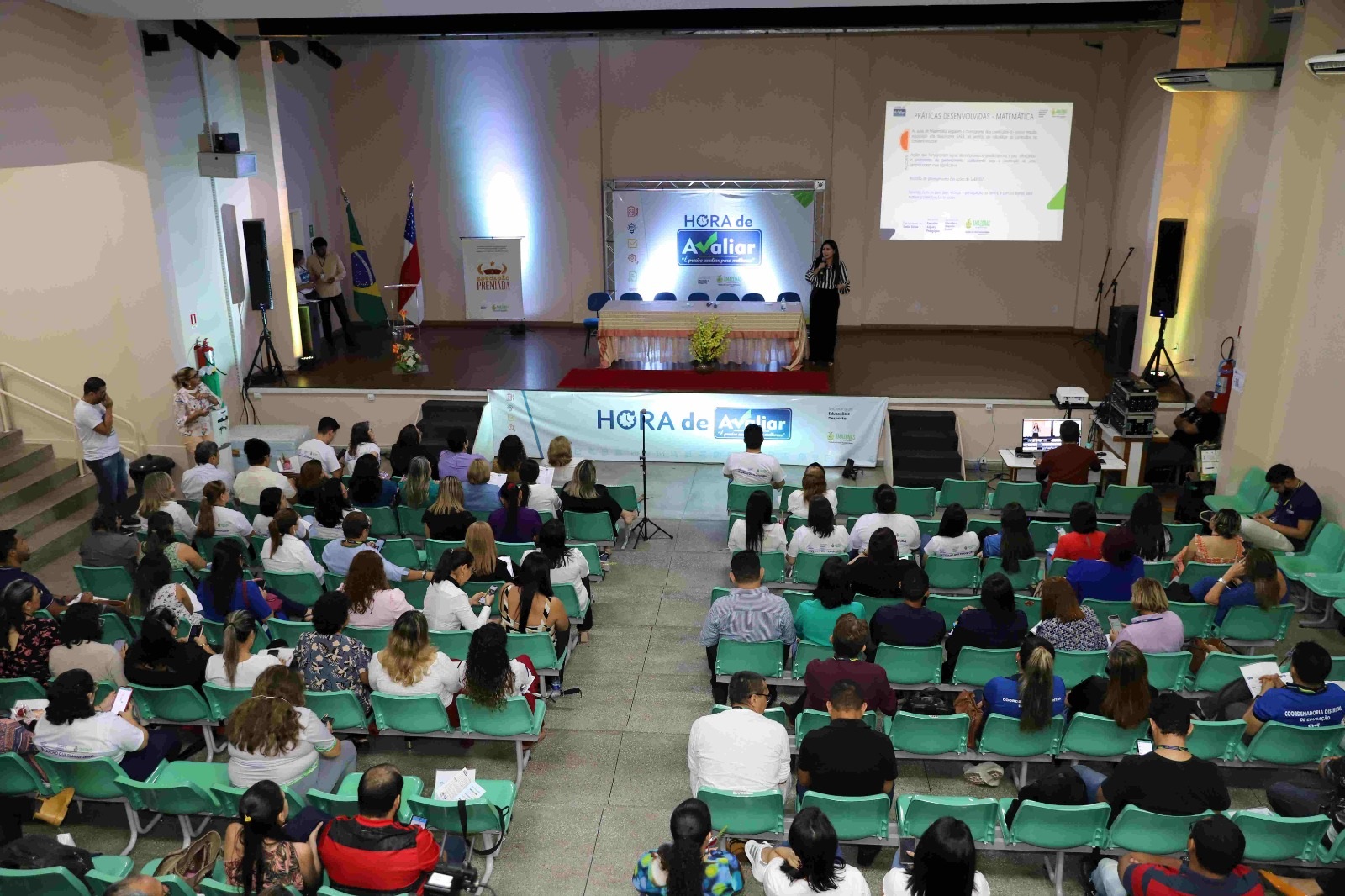 A Secretaria de Estado de Educação e Desporto Escolar realizou, nesta terça-feira (16/05), o “Hora de Avaliar: Diálogos e Reflexões”, evento que tem o objetivo de compartilhar práticas exitosas na preparação para o Sistema Nacional de Avaliação da Educação Básica (Saeb) 2023, que ocorre em outubro. Com a presença de gestores e pedagogos de escolas da rede estadual, representantes de 16 unidades de ensino, da capital e do interior, apresentaram boas práticas.