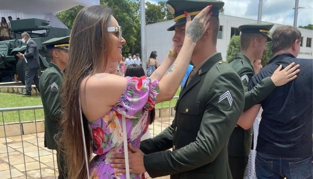 Uma imagem quase passou despercebida no último dia 4, na formatura da Escola de Sargentos da Infantaria, em Três Corações, Minas Gerais. O ineditismo só foi percebido quando a mulher de um dos formandos reconheceu Thaynna Dantas De Souza, que foi à formatura como mais uma das namoradas e mulheres dos militares.