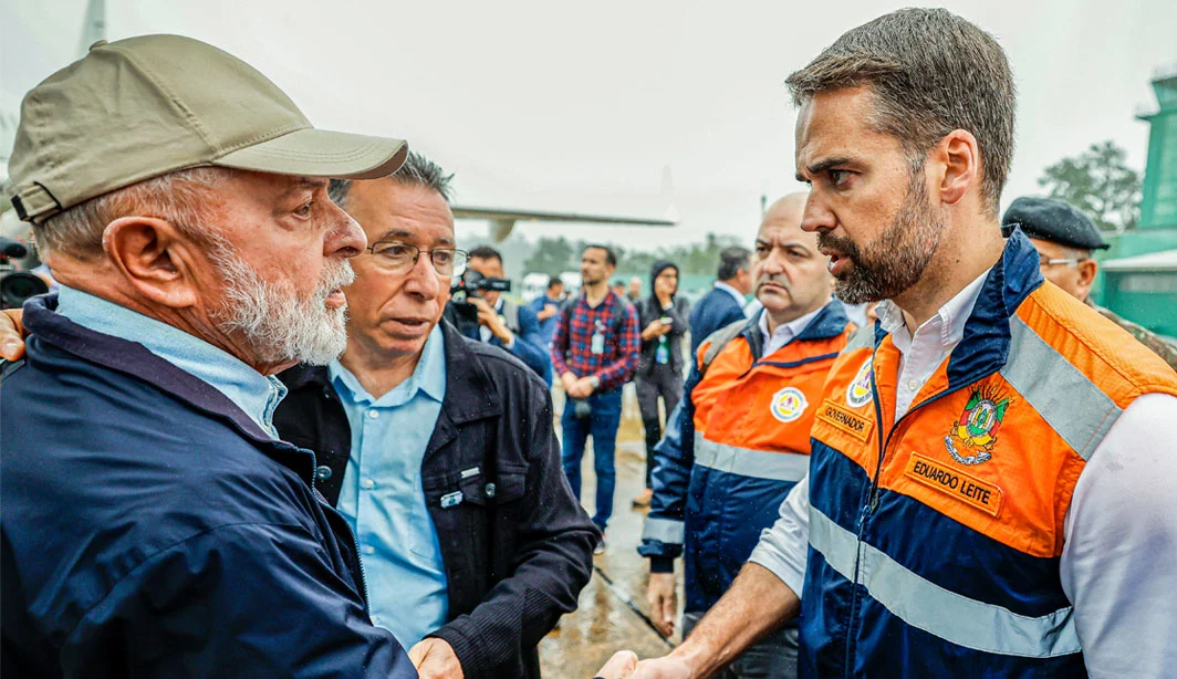 ESTRADAS – Ao se dirigir a Eduardo Leite, o presidente afirmou que o Governo Federal apoiará a reconstrução e recuperação de estradas gaúchas, e não apenas no âmbito das rodovias federais. “Eu sei que tem muitas estradas estaduais que estão com problema. Eu quero te dizer que não fique preocupado, porque o Governo Federal, por meio do Ministério do Transporte, vai ajudar você a recuperar também as estradas estaduais”, assegurou Lula, ciente do desafio financeiro do estado num contexto em que há 336 municípios afetados diretamente (67,6% dos 497 do Rio Grande do Sul)
