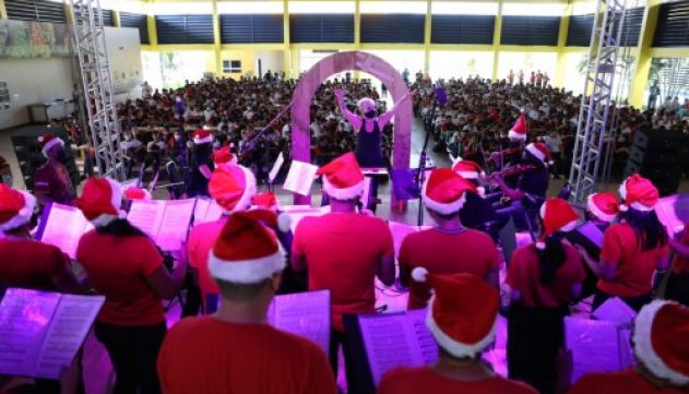 Abertura – Na segunda-feira (29/11), o projeto chegou a Iranduba (a 27 quilômetros de Manaus), na Escola Estadual de Tempo Integral (EETI) Maria Izabel Ferreira Xavier Desterro e Silva, para apresentação do espetáculo “Uma Carta de Natal”, com a Orquestra Jovem, Coral Adulto e Grupo Experimental de Teatro do Liceu de Artes e Ofícios Claudio Santoro.