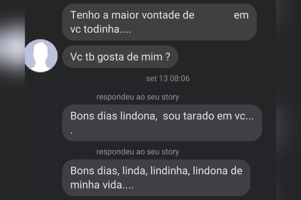 Depois de bloqueado, o suspeito entrou em contato com o irmão da ex-aluna, pedindo o número dela, e fez comentários em fotos do filho da vítima.