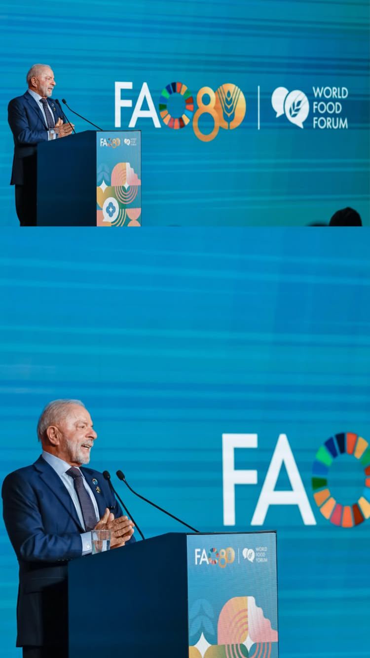 O presidente destacou que, mesmo diante dos avanços tecnológicos e da capacidade global de produção de alimentos, o mundo ainda convive com a injustiça da fome e da exclusão. "Hoje, tanto nossa capacidade de agir coletivamente quanto o otimismo que nos animava estão abalados. Os desafios se aprofundaram, mas não temos alternativa, senão persistir. Enquanto houver fome, a FAO permanecerá indispensável".