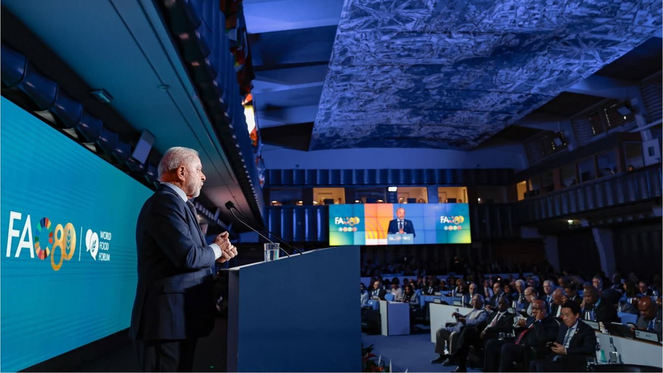 O presidente Luiz Inácio Lula da Silva participou, nesta segunda-feira, 13 de outubro, em Roma, da abertura do Fórum Mundial da Alimentação 2025, principal evento anual da Organização das Nações Unidas para a Alimentação e a Agricultura (FAO). A cerimônia, que ocorre dois meses após o anúncio da saída do Brasil do Mapa da Fome, marcou também as comemorações pelos 80 anos da FAO.