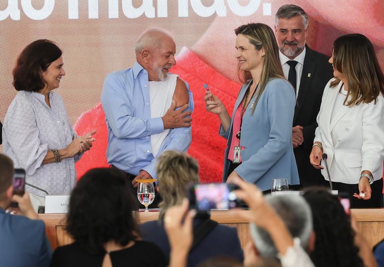 Presidente recebeu a vacina e incentivou os brasileiros a atualizar a caderneta de vacinação. A campanha de imunização segue pelo país até maio