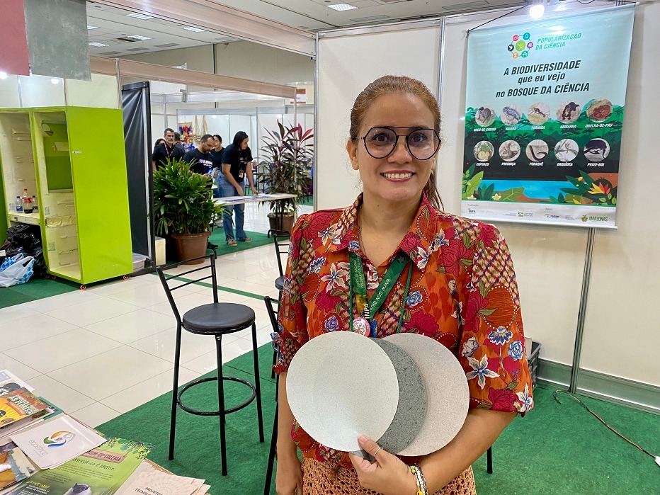Outra iniciativa apresentada na exposição foi a da pesquisadora do Instituto Nacional de Pesquisas da Amazônia (Inpa), Marcela Amazonas. Ela trabalha com a produção de papéis, com utilização de resíduos de produtos amazônicos, como fibra de tucumã e couro de peixe. “Hoje, nós já temos alguns papéis já desenvolvidos e testados para aplicação em paredes e revestimentos e temos um estudo agora do couro do peixe, que une a pele do peixe, com resíduos do tucumã”, destacou a pesquisadora.