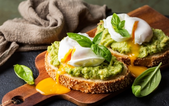 Torrada com ovo pochê e abacate