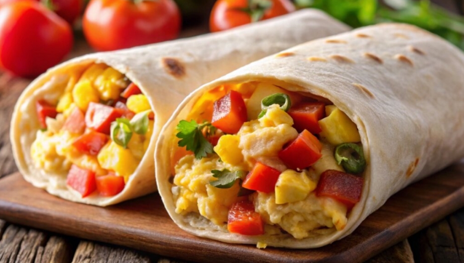 Wrap recheado com ovo e vegetais