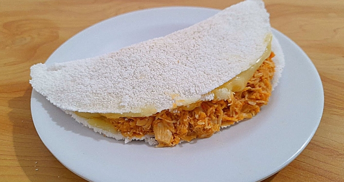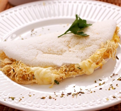 Tapioca com queijo branco e peito de frango
