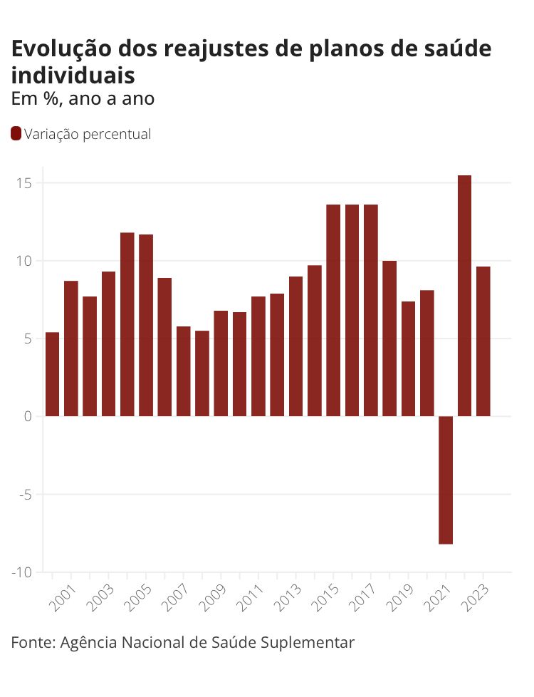 No ano anterior, foi determinado um reajuste negativo de -8,19% nos planos de saúde individuais em razão da queda provocada pela pandemia no uso de serviços médicos, com adiamento de procedimentos como cirurgias e exames (veja o histórico de reajuste de planos desde 2000).