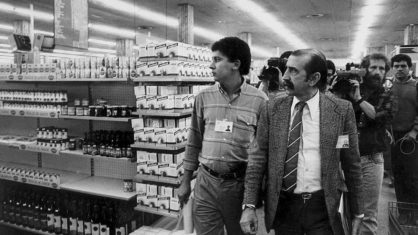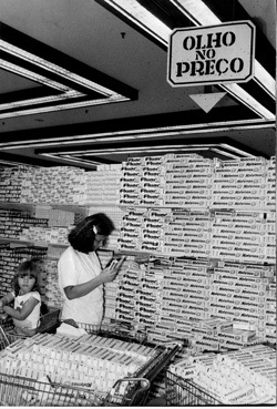 Consumidora confere preços em supermercado durante o plano Cruzado, em 1986