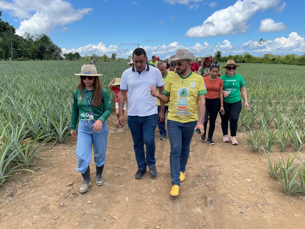 Durante a programação do Workshop, o Fórum Origens Amazonas, no qual o Idam ocupa a cadeira de Secretaria Executiva, realizou uma visita guiada na Unidade Demonstrativa do Abacaxi, em Novo Remanso, no último sábado (11/05), com a presença dos diretores-presidentes do Idam, Vanderlei Alvino, e do Ipaam, Juliano Valente, e da superintendente do Ministério da Agricultura e Pecuária (Mapa), Dionísia Campos.