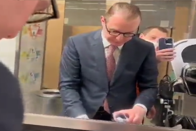Na sequência, o homem ameaça agredir fisicamente Zanin.“Vontade de meter a mão na orelha de um cara desse. […] Tinha que tomar um pau de todo mundo que está andando na rua”, diz.