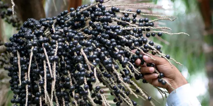O açaí é o fruto do açaizeiro, uma palmeira que cresce predominantemente na floresta amazônica. Esse fruto é um componente vital no estilo de vida das comunidades locais. Eles são cultivados e colhidos no Brasil há séculos. Os habitantes locais coletam o açaí manualmente de pequenos barcos, escalando a alta palmeira do açaí para chegar aos frutos.