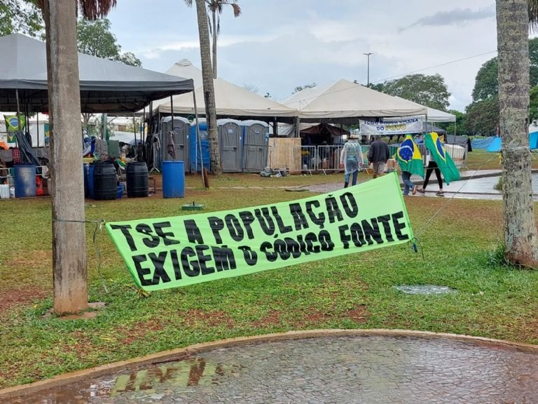 Em meio à sua fiscalização do processo eleitoral, as Forças Armadas solicitaram acesso “urgentíssimo” ao código-fonte das urnas dez meses depois do prazo previsto em lei, criando no círculo bolsonarista a impressão de que o TSE tentava impedir esse acesso, quando a verdade é que o pedido tinha sido feito de forma extemporânea. Mesmo com a justiça eleitoral tendo acatado o pedido, a mensagem que ficou entre os manifestantes, novamente errada, foi de que o acesso permanecia restrito. Resultado: faixas foram espalhadas pelo acampamento exigindo a oferta do código fonte, já disponibilizado para todas as entidades fiscalizadoras do pleito.