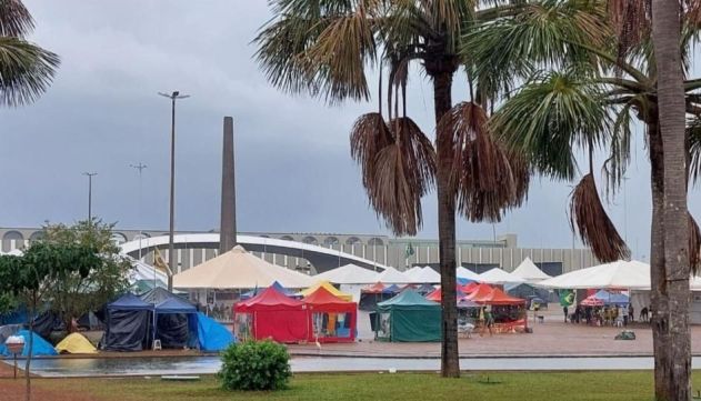 Um mês depois, o acampamento de bolsonaristas golpistas no QG do Exército em Brasília dobrou de tamanho. Caravanas de manifestantes de todo o país, em grande parte do PA e MS, estabelecem ilhas de barracas. No centro do acampamento, foi montada uma tenda