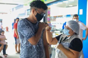 Logo nas primeiras horas da ação, a professora Dilenda Oliveira, moradora do bairro Redenção, acompanhou os dois filhos, de 15 e 17 anos, para tomarem a segunda dose da vacina. Jailson Oliveira, o mais velho, foi o primeiro a receber a vacina em um supermercado na zona centro-sul de Manaus. Ele comentou a importância de completar o ciclo vacinal.