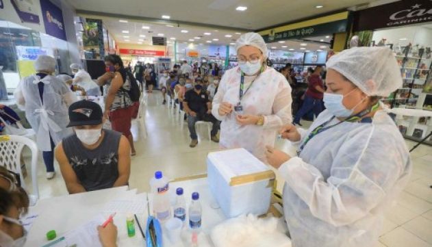 Ação conjunta – Além da Prefeitura de Manaus, o Governo do Amazonas contou com a parceria de diversas redes de supermercado, que abriram as estruturas para a montagem dos postos de vacinação.