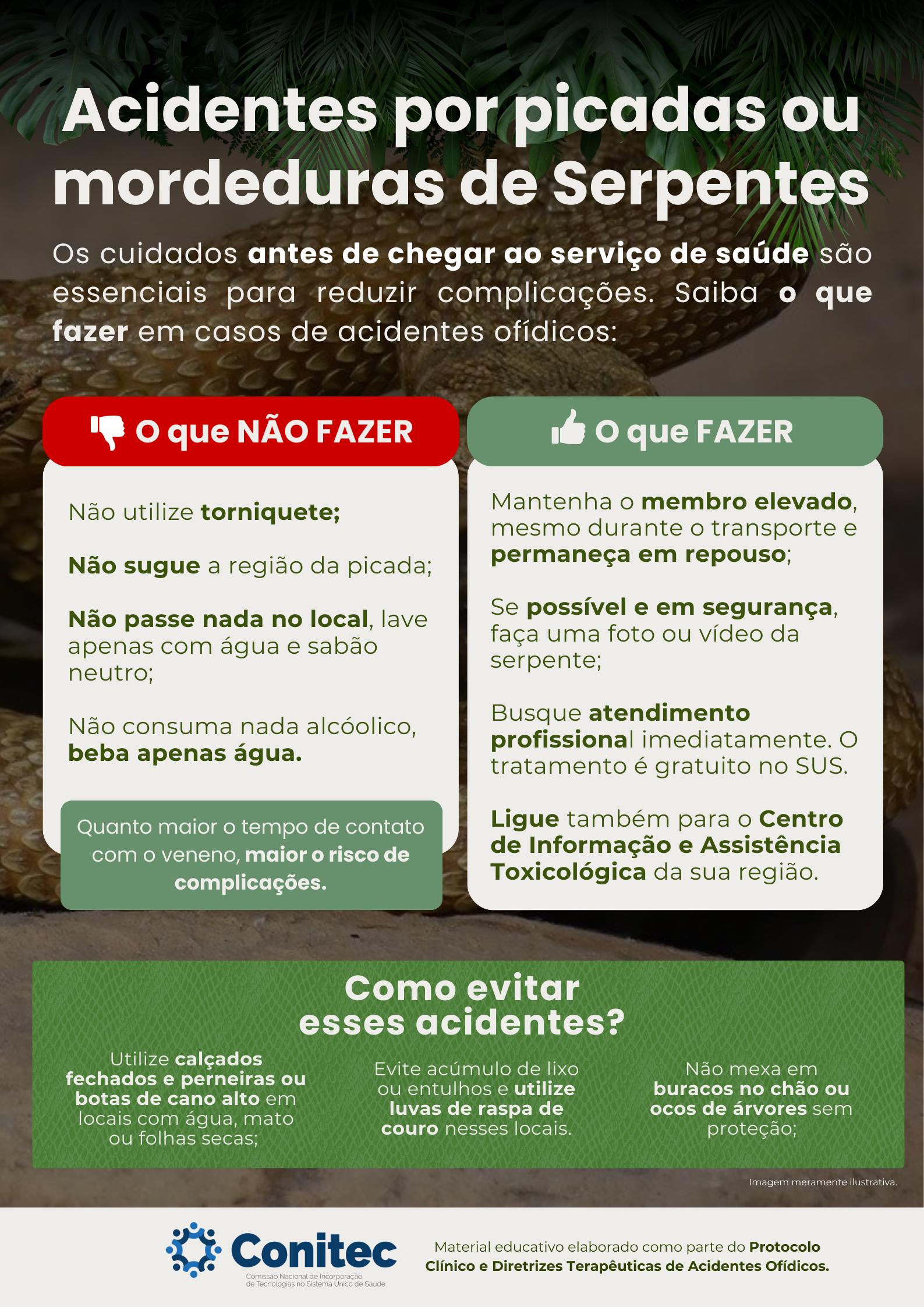 Além dos PCDTs de acidentes ofídicos e acidentes escorpiônicos, disponíveis no site da Conitec do Ministério da Saúde, o Instituto Vértice elaborou ainda materiais educativos sobre o que fazer – e o que não fazer – diante de uma picada por serpente ou escorpião, além de dicas para evitar os acidentes.