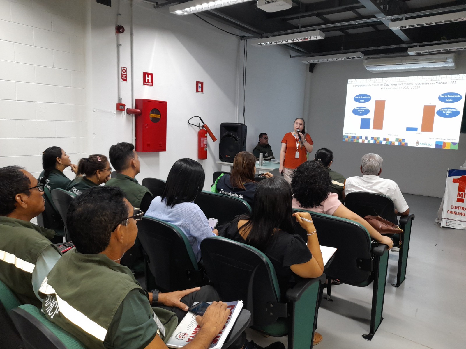 O cenário epidemiológico das arboviroses no município de Manaus foi apresentado, na manhã desta quinta-feira, 7/8, pela diretoria de Vigilância Ambiental, Epidemiológica, Zoonoses e da Saúde do Trabalhador da Secretaria Municipal de Saúde (DVAE/Semsa), durante reunião do Programa de Brigadas de Combate às Arboviroses do Estado do Amazonas, envolvendo a participação de representantes do Programa Saúde na Escola (PSE).