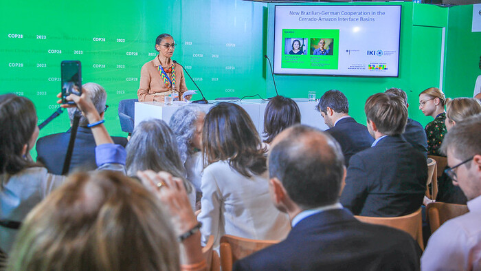A ministra destacou que o Cerrado atua como repositório de águas distribuídas para bacias hidrográficas no país: "Temos mais de 400 mil hectares em margens de rios e ao redor de nascentes no Cerrado, que levam água para a Bacia Amazônica.