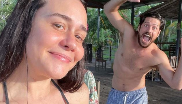 “Banho de rio. Ilha do Combú. Nosso dia de folga no paraíso! #cidadeinvisivel @netflixbrasil”, escreveu Alessandra na legenda do clique. Eles estão em Belém do Pará.