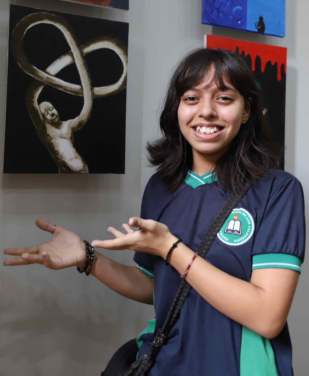 “Eu nunca tive a experiência de fazer um quadro, ir à uma exposição, e eu nunca me imaginei assim também. É uma oportunidade única, de verdade”, disse a aluna.