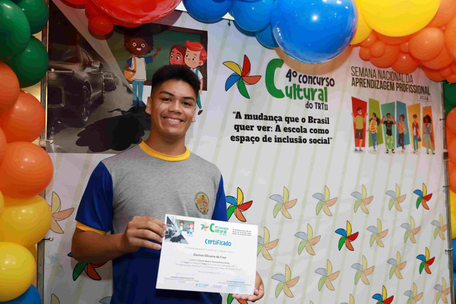 A Secretaria de Estado de Educação e Desporto Escolar teve representantes entre os vencedores do 4º Concurso Cultural do Tribunal Regional do Trabalho da 11ª Região (TRT-11), evento integrado à abertura da Semana Nacional da Aprendizagem Profissional, realizada pela instituição da Justiça do Trabalho. Voltados para os jovens, o concurso e o evento estimularam a reflexão sobre as primeiras experiências profissionais e a construção de um ambiente escolar mais inclusivo.