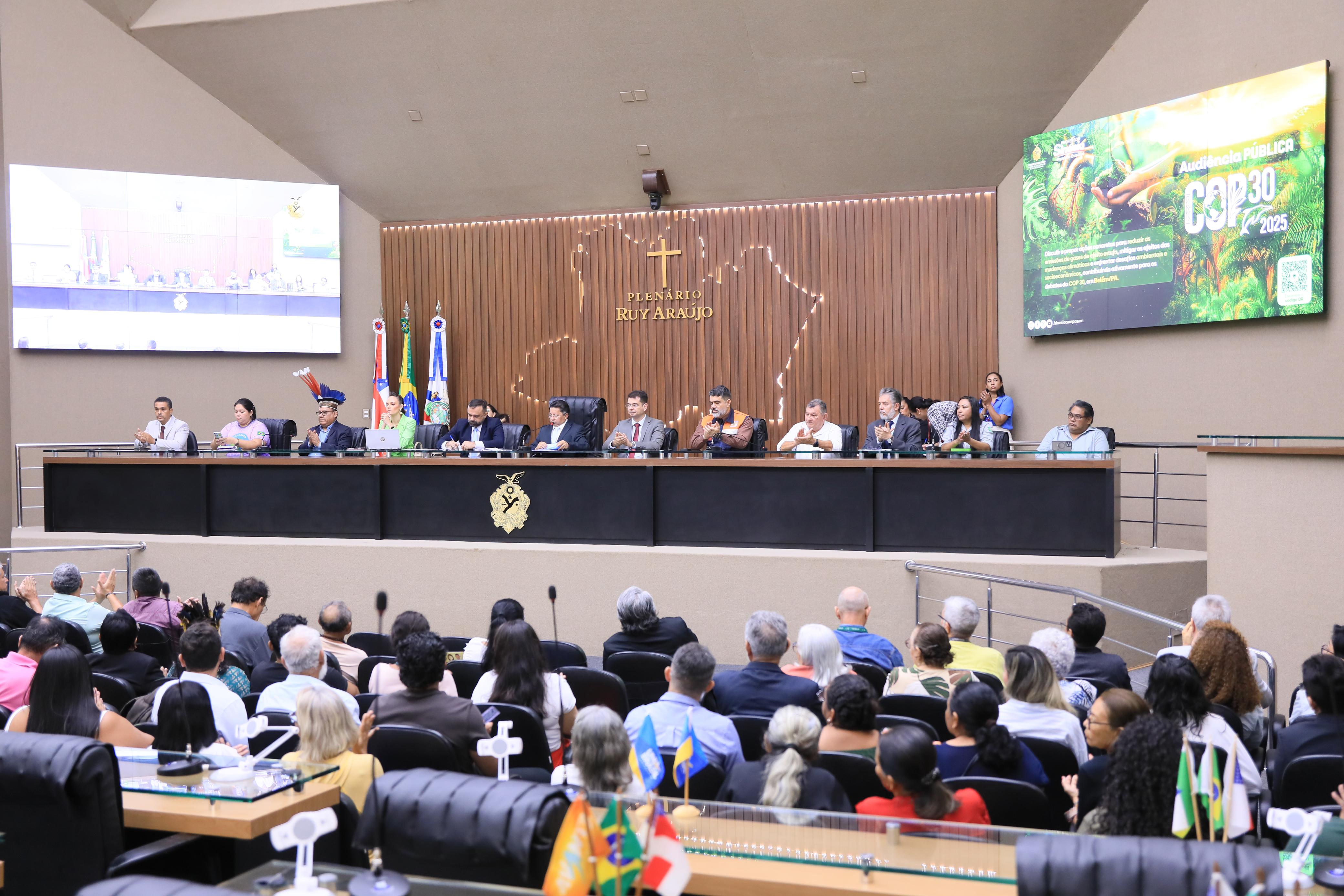 Nesta segunda-feira, 12, o deputado estadual Sinésio Campos (PT-AM) promoveu, no plenário Ruy Araújo da Assembleia Legislativa do Amazonas (ALEAM), uma audiência pública para reunir propostas da sociedade amazonense para a Conferência das Nações Unidas sobre Mudanças Climáticas (COP 30), que será realizada em novembro, na cidade de Belém (PA).