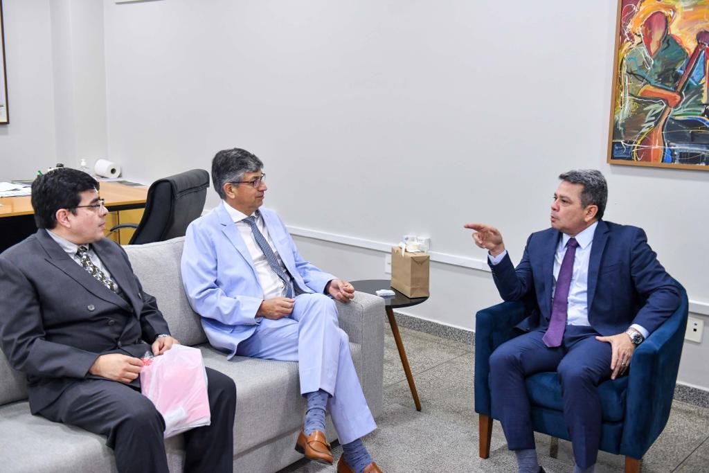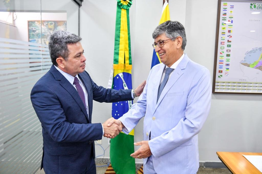 Representando o governador Wilson Lima, o vice-governador do Amazonas, Tadeu de Souza, se reuniu, na manhã desta terça-feira (04/07), com o embaixador do Equador no Brasil, Carlos Alberto Velastegui. A pauta do encontro, realizado na sede do Governo, no bairro Compensa, zona oeste de Manaus, incluiu o fortalecimento das relações entre os dois países amazônicos e o projeto multimodal Manta-Manaus.