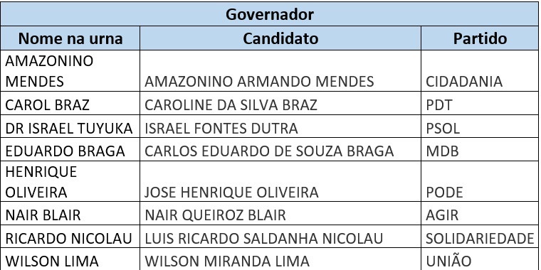 O Amazonas tem 600 candidatos disputando as eleições deste ano, em busca de ocupar os cargos de governador do Estado e seu vice, senador e dois suplentes, oito deputados federais e 24 deputados estaduais, num total de 35 vagas em disputa.