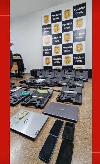 Em um dos endereços comerciais de Maciel, segundo a polícia, funcionava uma loja irregular de armas, munições e acessórios. A Polícia Civil apreendeu 15 pistolas 9 mm e dois rifles, calibre 22, avaliados em cerca de R$ 75 mil. Também foram apreendidas mais 200 munições, além de aparelhos celulares, computadores e documentos diversos.