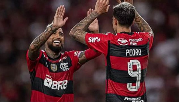 Já o Rubro-Negro começou amassando. Com menos de um minuto, Ayrton Lucas tirou tinta da trave. Aos seis e aos 12, Luiz Araújo e Pedro marcaram, respectivamente. Com 36 minutos, o camisa nove perdeu um gol feito de cabeça na pequena área (veja na imagem abaixo). E no minuto seguinte, Luiz Araújo carimbou a trave.