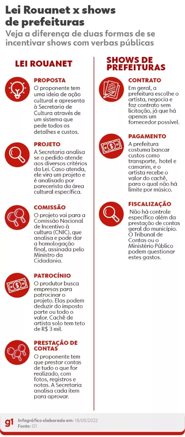 Nasceu, assim, o debate sobre contradição entre as críticas à Lei Rouanet, cujos projetos passam por vários critérios e controles, e shows de prefeituras, feitos sem licitação.