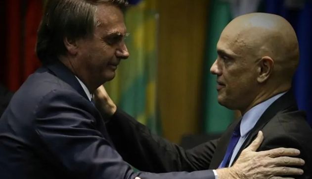 Alexandre de Moraes, Ministro do STF, e Jair Bolsonaro, ex-presidente e réu (Foto: Reprodução)