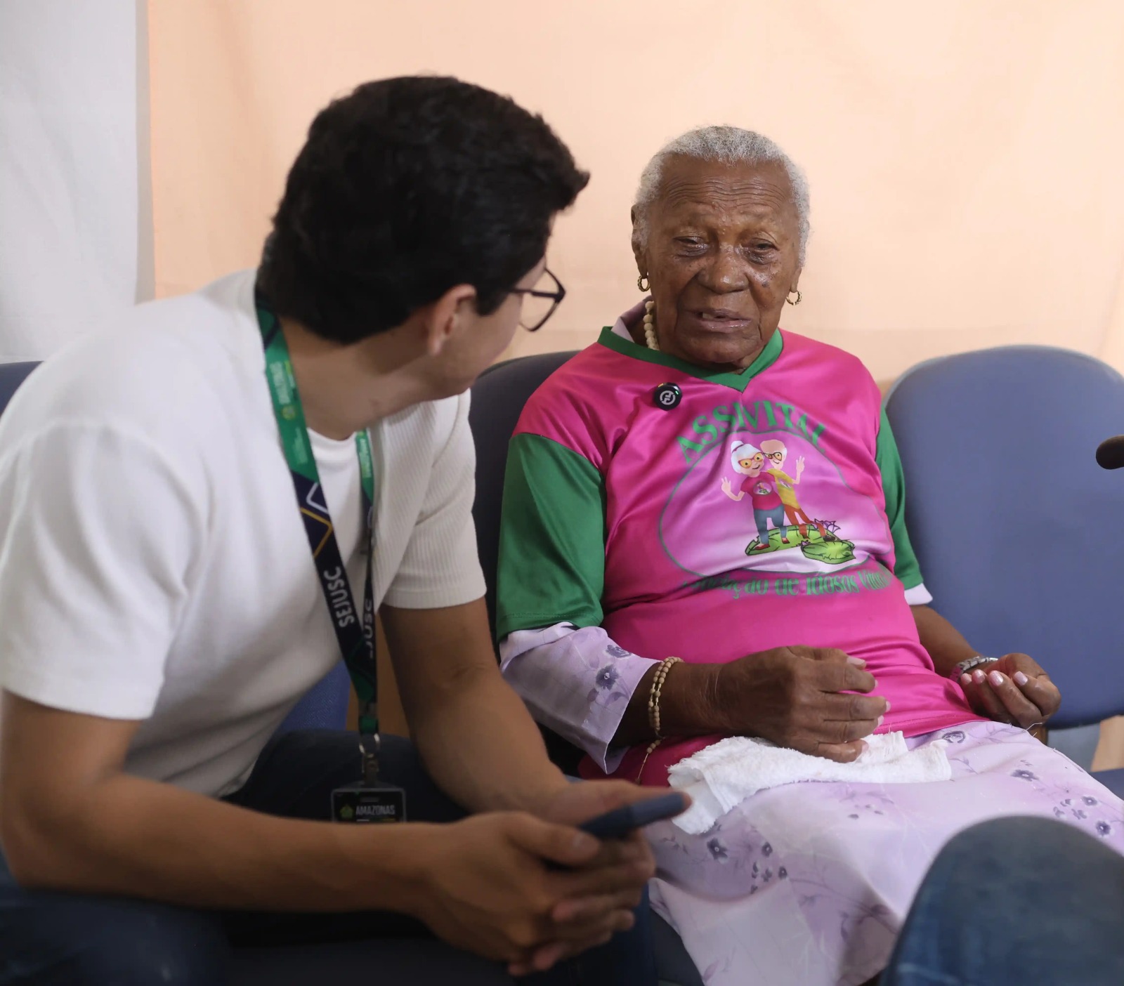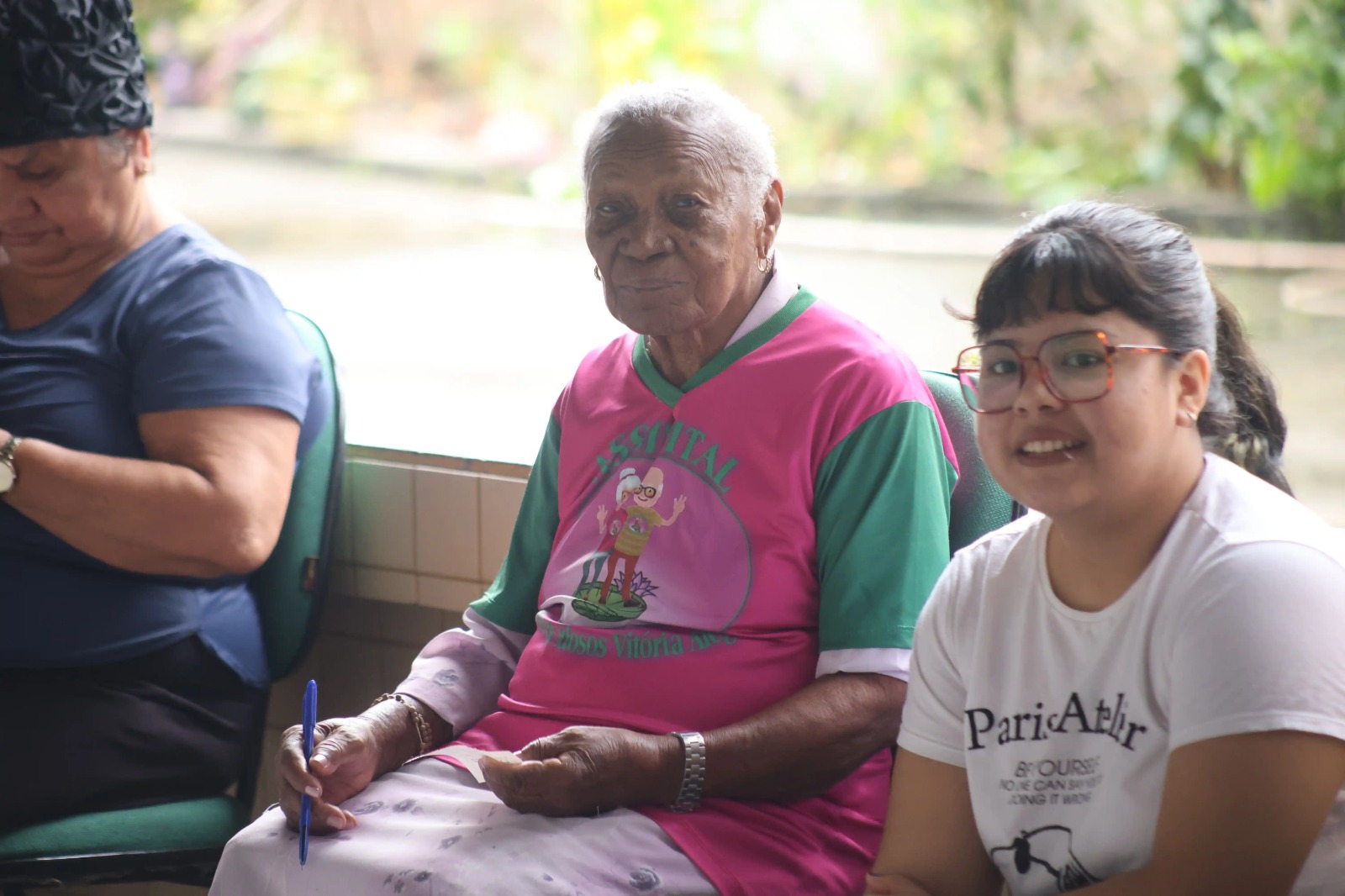 Seguindo o exemplo da mãe, Irenildes Teixeira, de 60 anos, também participa das atividades e atua como voluntária na cozinha da associação. Mais do que acompanhar, ela encontra na mãe uma inspiração diária de força e vida. “Eu me vejo muito nela. Às vezes eu nem quero vir, mas ela me incentiva. Eu acredito que é por isso que ela segue tão jovem. Com 103 anos, ela anda, caminha, dança, é alegre. Faz tudo sozinha. Eu fico muito feliz e muito grata a Deus por ter ela assim na nossa vida”, relatou a filha.