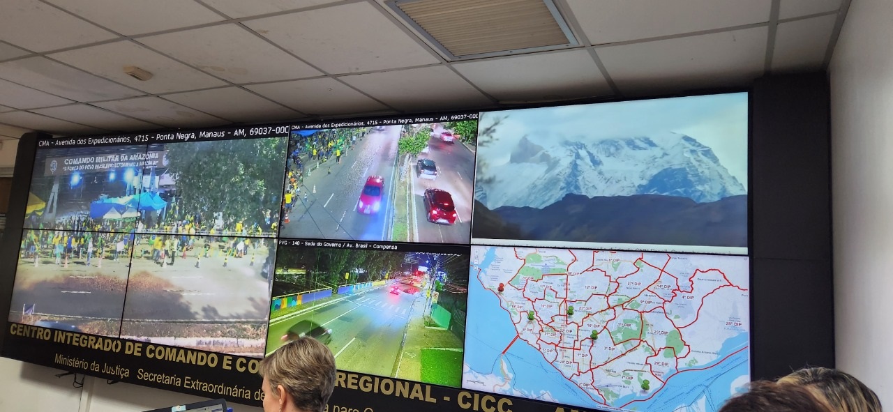 A Prefeitura de Manaus, por meio da Secretaria Municipal de Segurança Pública e Defesa Social (Semseg) e do Centro de Cooperação da Cidade (CCC), se reuniram na noite deste domingo, 8/1, com o Gabinete de Crise do Estado, para discutir as ações preventivas aos possíveis atos antidemocráticos. O encontro aconteceu no Centro Integrado de Comando e Controle (CICC), localizado na avenida André Araújo, bairro Aleixo, Zona Centro-Sul.