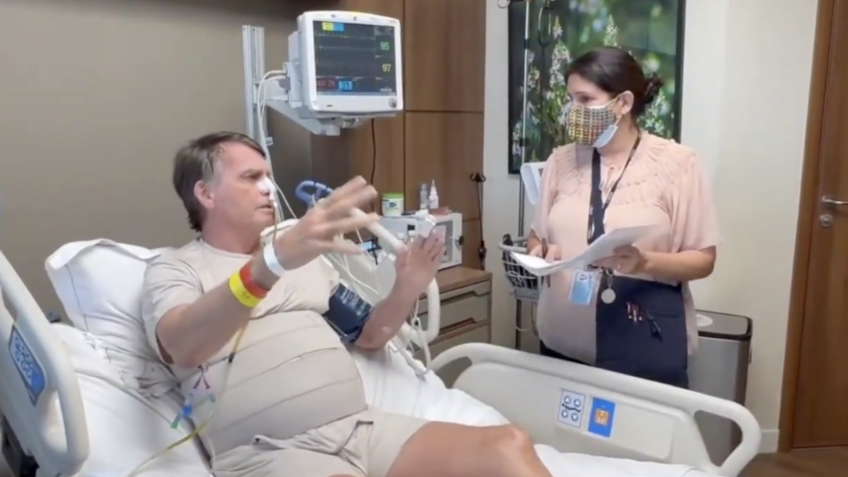 Jair Bolsonaro passou por uma cirurgia no intestino em 13 de abril. Segundo o último boletim médico, divulgado ontem, ele segue na UTI sem previsão de alta. No entanto,ontem, 22, participou de uma live do senador Flávio Bolsonaro (PL-RJ) para propagandear a venda de um capacete de grafeno de uma empresa em que os dois são sócios.