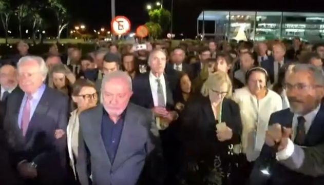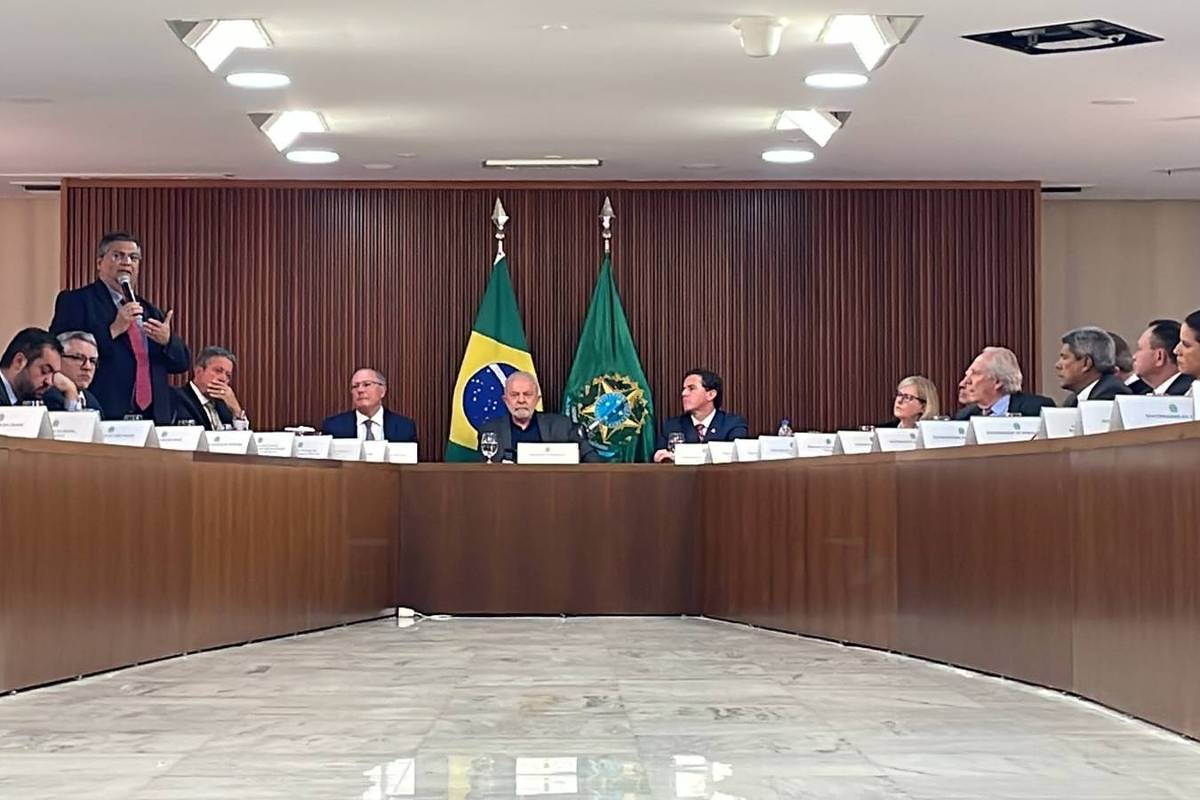 — Hoje estamos reunidos por causa mais nobre — disse Lula. — E quis Deus que essa não reunião acontecesse antes dessa que vocês não vieram reivindicar nada. Vieram prestar solidariedade ao país e a democracia.