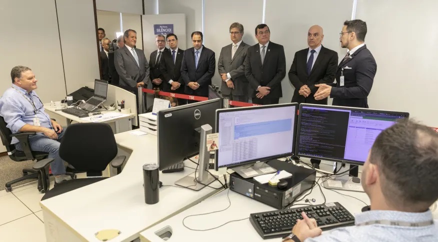 A convite do presidente do TSE, entidades, partidos e representantes do governo estiveram na sala de totalização de votos. 'É uma sala aberta, clara, nem secreta, nem escura', disse Moraes.