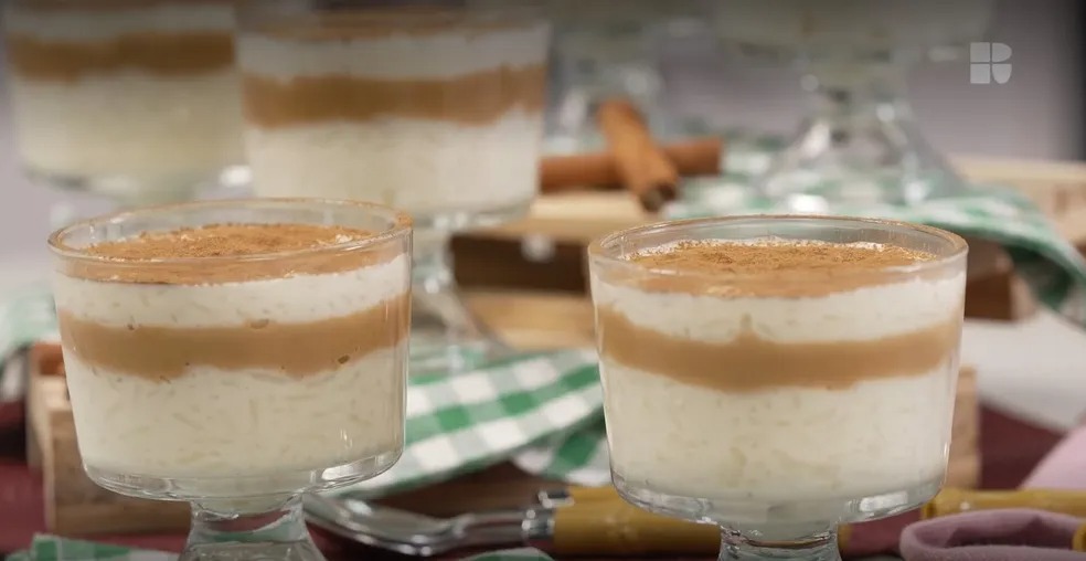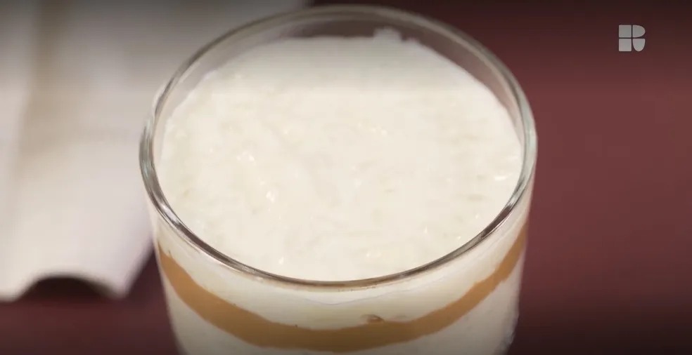 O arroz-doce com doce de leite rende seis belas porções e é servido em camadas