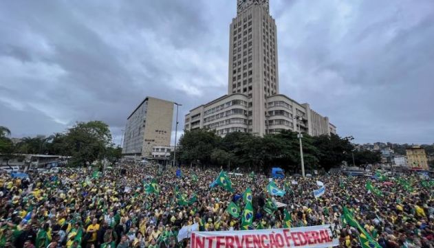 Manifestantes em ato antidemocrático no centro do Rio de Janeiro.