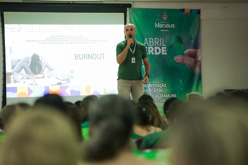 A campanha Abril Verde, movimento mundial que reitera importância da saúde e segurança no trabalho, está sendo realizada pela Prefeitura de Manaus enfocando ações de educação em saúde, abordagens em canteiros de obras, palestras e outras atividades. Como parte da programação, uma palestra enfocando as causas e consequências do Burnout, distúrbio também conhecido como ‘Síndrome do Esgotamento Profissional’, foi realizada na terça-feira, 9/4, à tarde, no auditório do Instituto Filippo Smaldone, localizado no bairro Planalto, na Zona Oeste.